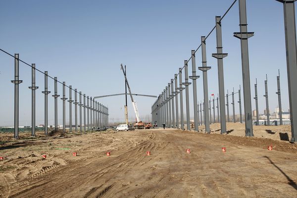 據了解,河南礦山智能產業園占地面積1200畝,今日上梁的鋼結構車間廠房,是產業園一期工程,廠房結構型式為單層門式鋼架結構,主體為地上一層車間,地上總高度為30米,總長度達640多米,建筑面積16萬平方米。
